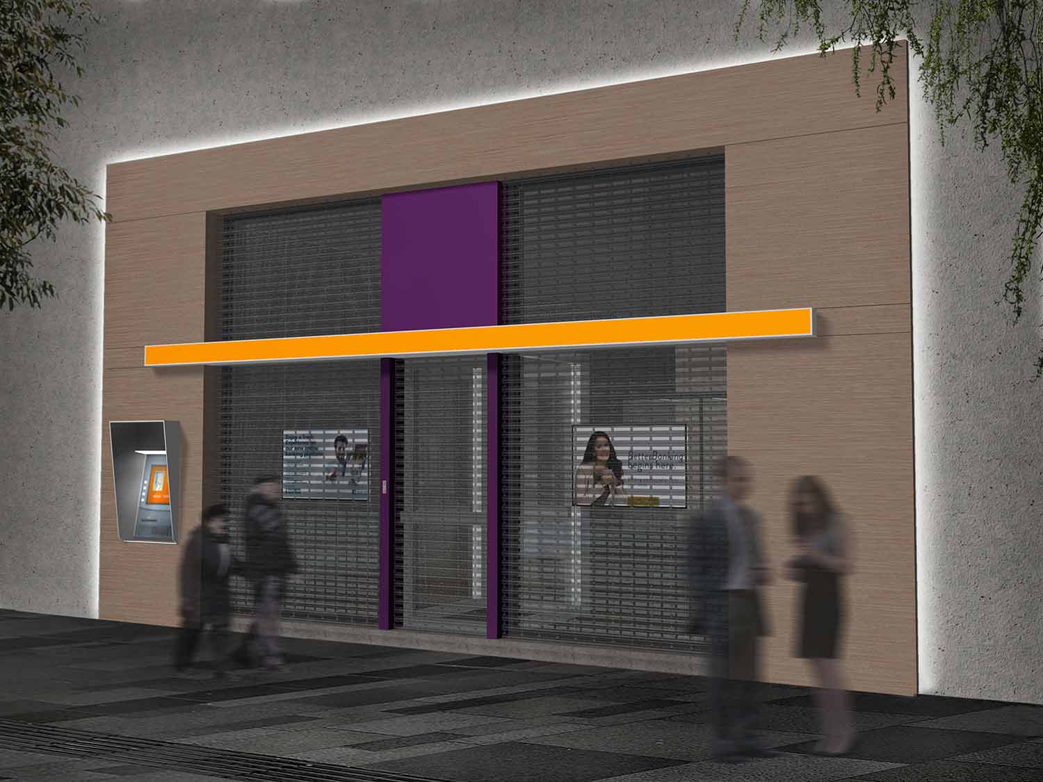Η πρόταση αφορά στον αρχιτεκτονικό σχεδιασμό του πρότυπου καταστήματος μιας νέας τράπεζας που θα ενσωματώνει τα χαρακτηριστικά της εταιρικής ταυτότητας. Στόχος είναι να δημιουργηθεί ένα περιβάλλον φιλικό και οικείο που θα έχει στο επίκεντρο τον πελάτη. Είναι σημαντικό να δημιουργηθεί ένα μοντέλο ευπροσάρμοστο που να μπορεί να διαφοροποιηθεί σε κάθε κατάστημα χωρίς να χάνει τον χαρακτήρα του.