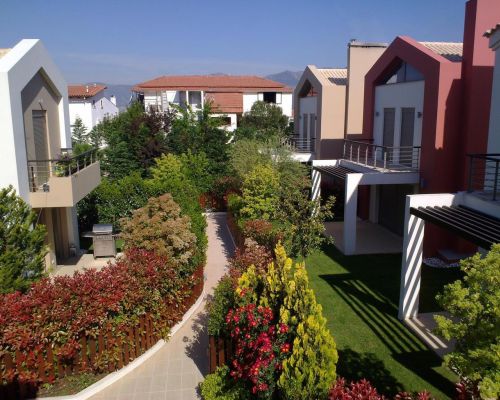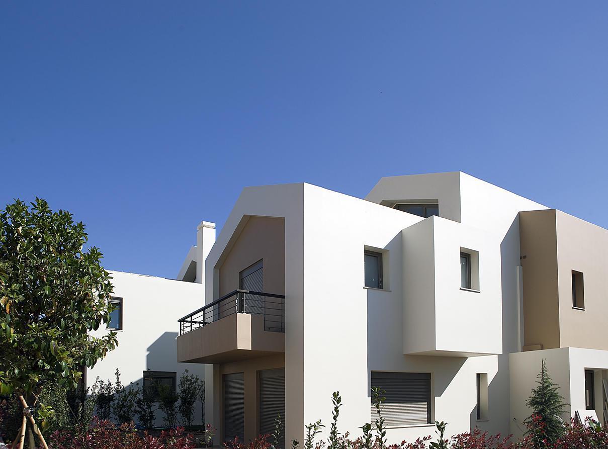 Ο σχεδιασμός βασίστηκε σε αφαιρετικές γραμμές, καθαρή γεωμετρία και χρήση σύγχρονων υλικών. Όλες οι κατοικίες έχουν μεγάλες βεράντες με ξύλινες πέργκολες, ενώ οι ισόγειοι χώροι προβάλλουν στον ιδιόκτητο κήπο κάθε κατοικίας ο οποίος τις αγκαλιάζει.